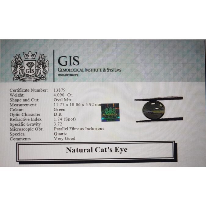 Beautiful 4.09 Ct. Cat’s Eye (Good Mines) Sava 4 Ratti Lehsunia. Free Horoscope & Free Pundit Ji Advise / Consultation. Original Natural Lab certified gems by IGI GTL / Birth stones / Large Gem Selection of shree shubh Rashi Ratan Vedic dhan at Gem Mines. May Bhagwan Brahma, Vishnu, Shiv & Universe bless you.