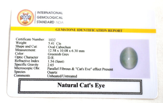 Beautiful 5.41 Cts Natural Cat’s Eye (AAA-Mines) sva 6 Ratti CATS EYE. Free Horoscope & Free Pundit Ji Astrological Advise / Consultation. Original Natural Lab certified gems by IGI GTL / Birth stones / Large Gem Selection of shree shubh Rashi Ratan Vedic dhan at Gem Mines. May Bhagwan Brahma, Vishnu, Shiv & Universe bless you.