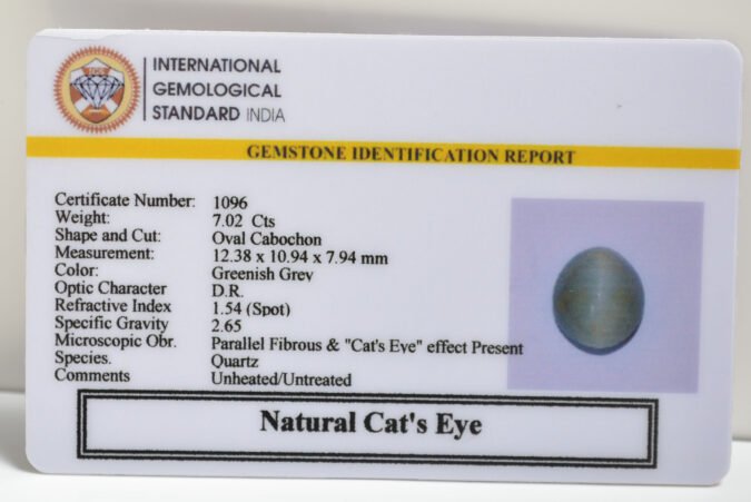 Beautiful 7.02 Cts Natural Cat’s Eye (AAA-Mines) sva 7 Ratti CATS EYE. Free Horoscope & Free Pundit Ji Astrological Advise / Consultation. Original Natural Lab certified gems by IGI GTL / Birth stones / Large Gem Selection of shree shubh Rashi Ratan Vedic dhan at Gem Mines. May Bhagwan Brahma, Vishnu, Shiv & Universe bless you.