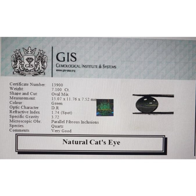 Beautiful 7.1 Ct. Cat’s Eye (Good Mines) Sava 7 Ratti Lehsunia. Free Horoscope & Free Pundit Ji Advise / Consultation. Original Natural Lab certified gems by IGI GTL / Birth stones / Large Gem Selection of shree shubh Rashi Ratan Vedic dhan at Gem Mines. May Bhagwan Brahma, Vishnu, Shiv & Universe bless you.