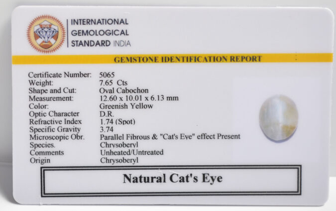 Beautiful 7.65 Cts Natural Cat’s Eye (AAA+-Mines) sva 8+ Ratti CATS EYE. Free Horoscope & Free Pundit Ji Astrological Advise / Consultation. Original Natural Lab certified gems by IGI GTL / Birth stones / Large Gem Selection of shree shubh Rashi Ratan Vedic dhan at Gem Mines. May Bhagwan Brahma, Vishnu, Shiv & Universe bless you.