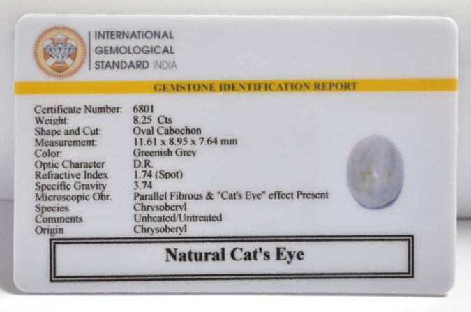 Beautiful 8.25 Cts Natural Cat’s Eye (AAA+-Mines) sva 9+ Ratti CATS EYE. Free Horoscope & Free Pundit Ji Astrological Advise / Consultation. Original Natural Lab certified gems by IGI GTL / Birth stones / Large Gem Selection of shree shubh Rashi Ratan Vedic dhan at Gem Mines. May Bhagwan Brahma, Vishnu, Shiv & Universe bless you.