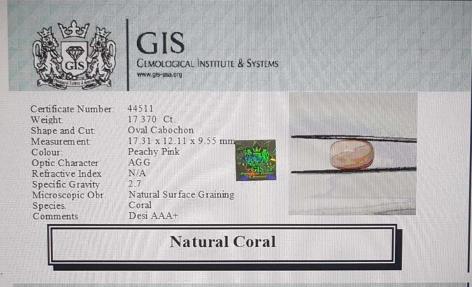 Beautiful 17.37 Ct. Coral (Desi Coral Mines) Sava 19 Ratti Moonga. Free Horoscope & Free Pundit Ji Advise / Consultation. Original Natural Lab certified gems by IGI GTL / Birth stones / Large Gem Selection of shree shubh Rashi Ratan Vedic dhan at Gem Mines. May Bhagwan Brahma, Vishnu, Shiv & Universe bless you.