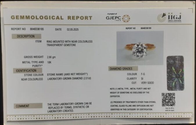 Beautiful 2.01 Cts CVD (Round Brilliant Cut) sva 2+ Ratti CVD Gold RING. / Color:F-G / Clarity:SI / Free Horoscope & Free Pundit Ji Astrological Advise / Consultation. Original Natural Lab certified gems by IGI GTL / Birth stones / Large Gem Selection of shree shubh Rashi Ratan Vedic dhan at Gem Mines. May Bhagwan Brahma, Vishnu, Shiv & Universe bless you.