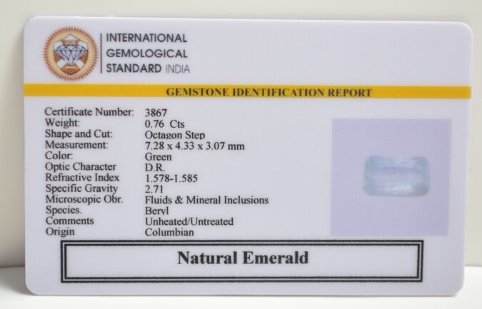 Beautiful 0.76 Cts Natural Emerald (AAA+-Mines) sva 0+ Ratti EMERALD. Free Horoscope & Free Pundit Ji Astrological Advise / Consultation. Original Natural Lab certified gems by IGI GTL / Birth stones / Large Gem Selection of shree shubh Rashi Ratan Vedic dhan at Gem Mines. May Bhagwan Brahma, Vishnu, Shiv & Universe bless you.