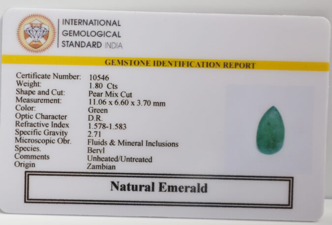 Certified Natural Emerald 1.8 Ct.(2+ Ratti) in Pear Mix Cut shape