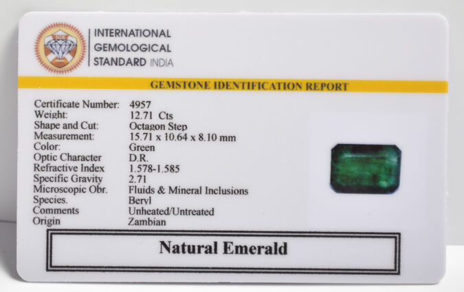 Beautiful 12.71 Cts Natural Emerald (Top-Mines) sva 14+ Ratti EMERALD. Free Horoscope & Free Pundit Ji Astrological Advise / Consultation. Original Natural Lab certified gems by IGI GTL / Birth stones / Large Gem Selection of shree shubh Rashi Ratan Vedic dhan at Gem Mines. May Bhagwan Brahma, Vishnu, Shiv & Universe bless you.