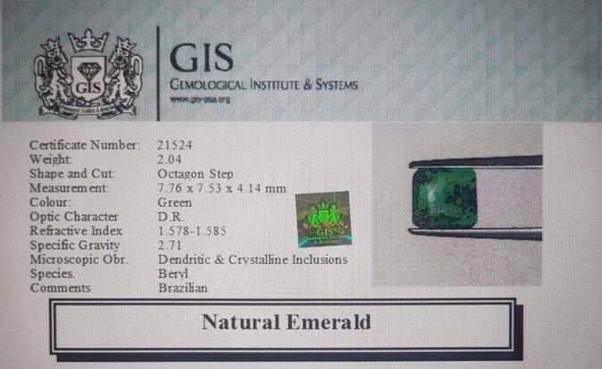 Beautiful 2.04 Ct. Emerald (Brazilian Mines) Sava 2 Ratti Panna. Free Horoscope & Free Pundit Ji Advise / Consultation. Original Natural Lab certified gems by IGI GTL / Birth stones / Large Gem Selection of shree shubh Rashi Ratan Vedic dhan at Gem Mines. May Bhagwan Brahma, Vishnu, Shiv & Universe bless you.