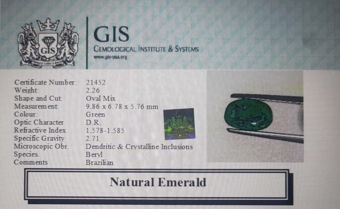 Beautiful 2.26 Ct. Emerald (Brazilian Mines) Sava 2 Ratti Panna. Free Horoscope & Free Pundit Ji Advise / Consultation. Original Natural Lab certified gems by IGI GTL / Birth stones / Large Gem Selection of shree shubh Rashi Ratan Vedic dhan at Gem Mines. May Bhagwan Brahma, Vishnu, Shiv & Universe bless you.