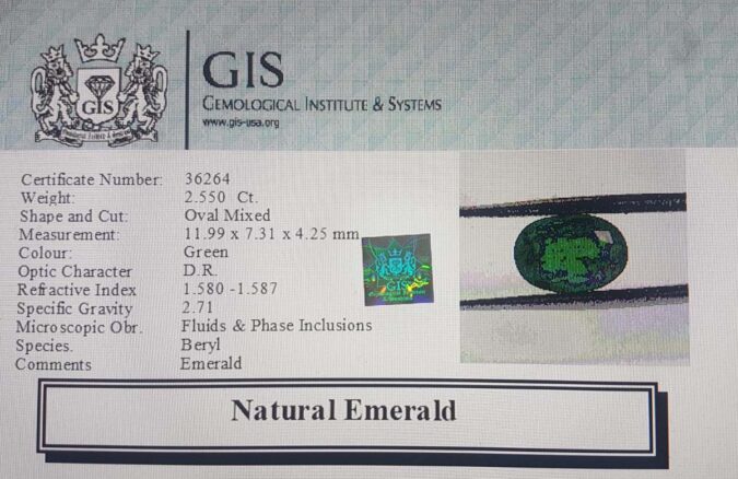 Beautiful 2.55 Ct. Emerald (Emerald Mines) Sava 2 Ratti Panna. Free Horoscope & Free Pundit Ji Advise / Consultation. Original Natural Lab certified gems by IGI GTL / Birth stones / Large Gem Selection of shree shubh Rashi Ratan Vedic dhan at Gem Mines. May Bhagwan Brahma, Vishnu, Shiv & Universe bless you.