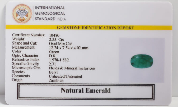 Certified Natural Emerald 2.55 Ct.(2+ Ratti) in Oval Mix Cut shape