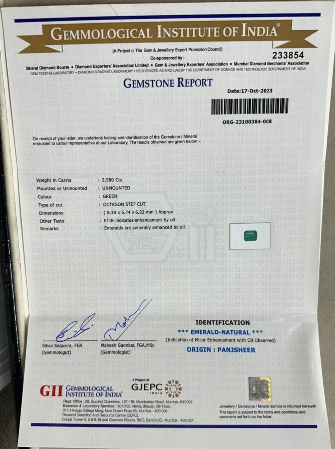 Beautiful 2.58 Cts Natural Emerald (Top+-Mines) sva 2+ Ratti EMERALD. Free Horoscope & Free Pundit Ji Astrological Advise / Consultation. Original Natural Lab certified gems by IGI GTL / Birth stones / Large Gem Selection of shree shubh Rashi Ratan Vedic dhan at Gem Mines. May Bhagwan Brahma, Vishnu, Shiv & Universe bless you.