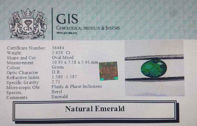 Beautiful 2.62 Ct. Emerald (Emerald Mines) Sava 2 Ratti Panna. Free Horoscope & Free Pundit Ji Advise / Consultation. Original Natural Lab certified gems by IGI GTL / Birth stones / Large Gem Selection of shree shubh Rashi Ratan Vedic dhan at Gem Mines. May Bhagwan Brahma, Vishnu, Shiv & Universe bless you.