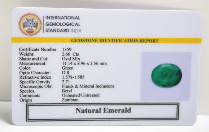 Beautiful 2.66 Cts Natural Emerald (AAA+-Mines) sva 2+ Ratti EMERALD. Free Horoscope & Free Pundit Ji Astrological Advise / Consultation. Original Natural Lab certified gems by IGI GTL / Birth stones / Large Gem Selection of shree shubh Rashi Ratan Vedic dhan at Gem Mines. May Bhagwan Brahma, Vishnu, Shiv & Universe bless you.