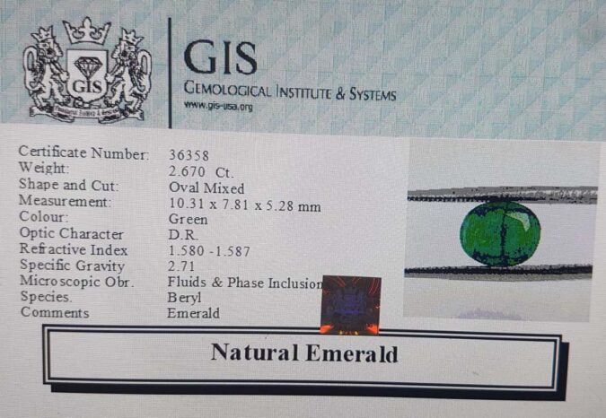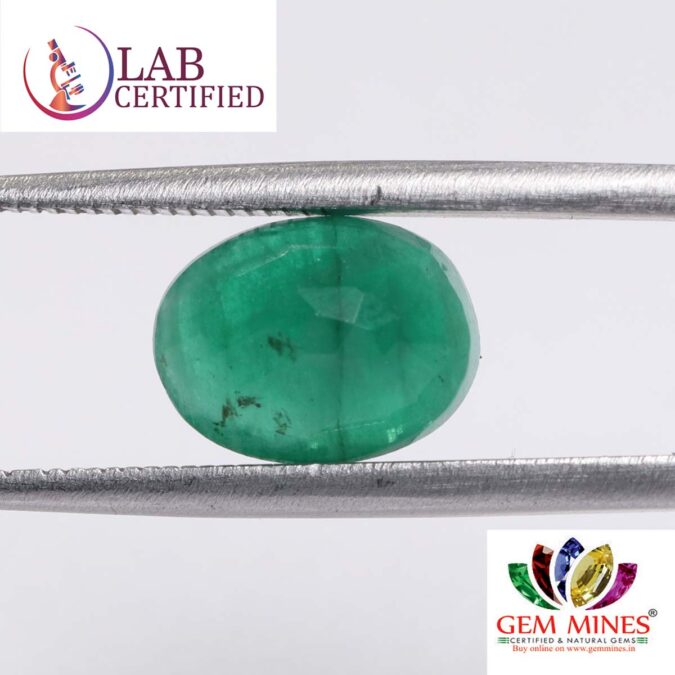 Beautiful 2.67 Ct. Emerald (Emerald Mines) Sava 2 Ratti Panna. Free Horoscope & Free Pundit Ji Advise / Consultation. Original Natural Lab certified gems by IGI GTL / Birth stones / Large Gem Selection of shree shubh Rashi Ratan Vedic dhan at Gem Mines. May Bhagwan Brahma, Vishnu, Shiv & Universe bless you.