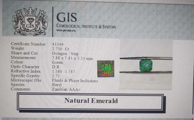 Beautiful 2.73 Ct. Emerald (Zambian Mines) Sava 3 Ratti Panna. Free Horoscope & Free Pundit Ji Advise / Consultation. Original Natural Lab certified gems by IGI GTL / Birth stones / Large Gem Selection of shree shubh Rashi Ratan Vedic dhan at Gem Mines. May Bhagwan Brahma, Vishnu, Shiv & Universe bless you.