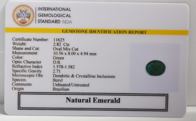 Certified Natural Emerald 2.82 Ct.(3+ Ratti) in Oval Mix Cut shape
