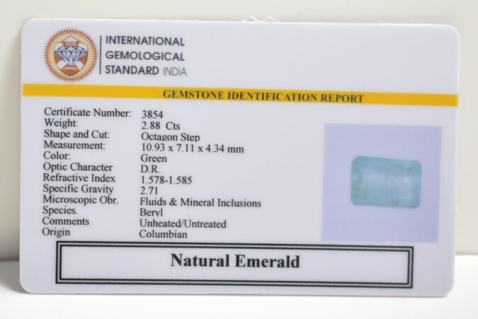 Beautiful 2.88 Cts Natural Emerald (AAA+-Mines) sva 3+ Ratti EMERALD. Free Horoscope & Free Pundit Ji Astrological Advise / Consultation. Original Natural Lab certified gems by IGI GTL / Birth stones / Large Gem Selection of shree shubh Rashi Ratan Vedic dhan at Gem Mines. May Bhagwan Brahma, Vishnu, Shiv & Universe bless you.