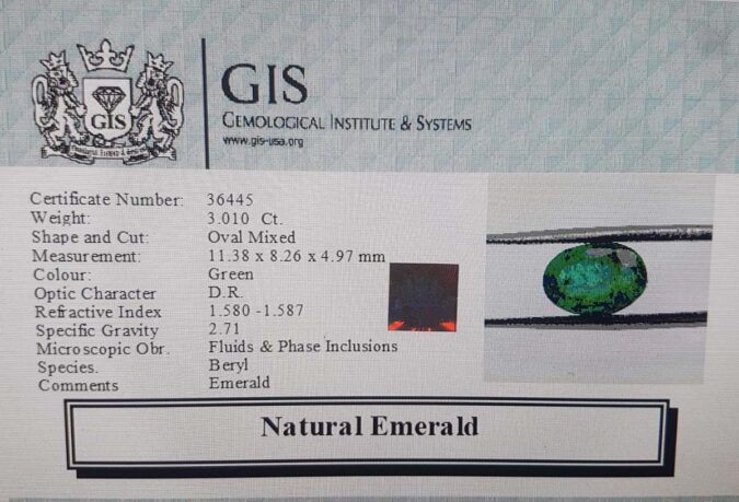 Beautiful 3.01 Ct. Emerald (Emerald Mines) Sava 3 Ratti Panna. Free Horoscope & Free Pundit Ji Advise / Consultation. Original Natural Lab certified gems by IGI GTL / Birth stones / Large Gem Selection of shree shubh Rashi Ratan Vedic dhan at Gem Mines. May Bhagwan Brahma, Vishnu, Shiv & Universe bless you.