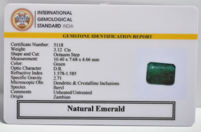 Beautiful 3.12 Cts Natural Emerald (AAA+-Mines) sva 3+ Ratti EMERALD. Free Horoscope & Free Pundit Ji Astrological Advise / Consultation. Original Natural Lab certified gems by IGI GTL / Birth stones / Large Gem Selection of shree shubh Rashi Ratan Vedic dhan at Gem Mines. May Bhagwan Brahma, Vishnu, Shiv & Universe bless you.