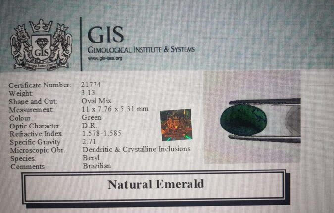 Beautiful 3.13 Ct. Emerald (Brazilian Mines) Sava 3 Ratti Panna. Free Horoscope & Free Pundit Ji Advise / Consultation. Original Natural Lab certified gems by IGI GTL / Birth stones / Large Gem Selection of shree shubh Rashi Ratan Vedic dhan at Gem Mines. May Bhagwan Brahma, Vishnu, Shiv & Universe bless you.