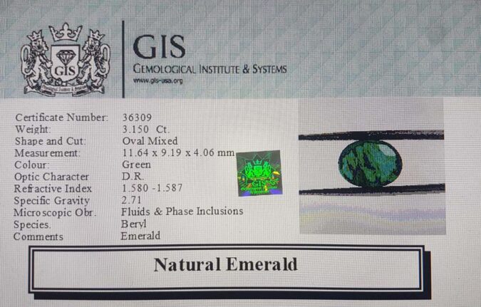 Beautiful 3.15 Ct. Emerald (Emerald Mines) Sava 3 Ratti Panna. Free Horoscope & Free Pundit Ji Advise / Consultation. Original Natural Lab certified gems by IGI GTL / Birth stones / Large Gem Selection of shree shubh Rashi Ratan Vedic dhan at Gem Mines. May Bhagwan Brahma, Vishnu, Shiv & Universe bless you.