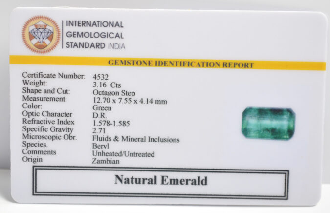 Beautiful 3.16 Cts Natural Emerald (AAA+-Mines) sva 3+ Ratti EMERALD. Free Horoscope & Free Pundit Ji Astrological Advise / Consultation. Original Natural Lab certified gems by IGI GTL / Birth stones / Large Gem Selection of shree shubh Rashi Ratan Vedic dhan at Gem Mines. May Bhagwan Brahma, Vishnu, Shiv & Universe bless you.