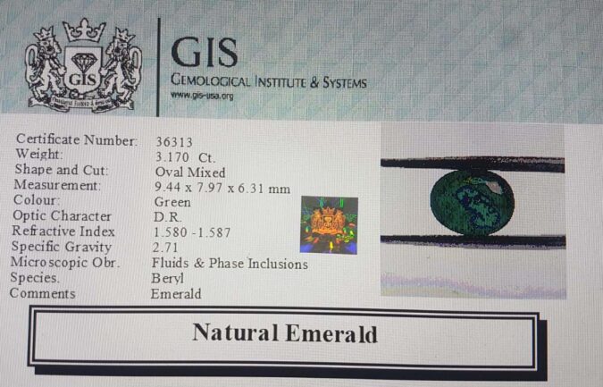 Beautiful 3.17 Ct. Emerald (Emerald Mines) Sava 3 Ratti Panna. Free Horoscope & Free Pundit Ji Advise / Consultation. Original Natural Lab certified gems by IGI GTL / Birth stones / Large Gem Selection of shree shubh Rashi Ratan Vedic dhan at Gem Mines. May Bhagwan Brahma, Vishnu, Shiv & Universe bless you.