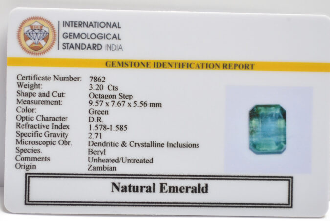 Beautiful 3.2 Cts Natural Emerald (AAA+-Mines) sva 3+ Ratti EMERALD. Free Horoscope & Free Pundit Ji Astrological Advise / Consultation. Original Natural Lab certified gems by IGI GTL / Birth stones / Large Gem Selection of shree shubh Rashi Ratan Vedic dhan at Gem Mines. May Bhagwan Brahma, Vishnu, Shiv & Universe bless you.