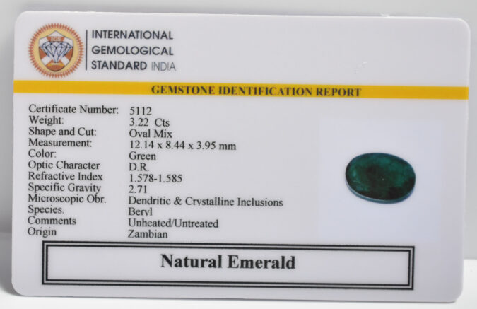 Beautiful 3.22 Cts Natural Emerald (AAA+-Mines) sva 3+ Ratti EMERALD. Free Horoscope & Free Pundit Ji Astrological Advise / Consultation. Original Natural Lab certified gems by IGI GTL / Birth stones / Large Gem Selection of shree shubh Rashi Ratan Vedic dhan at Gem Mines. May Bhagwan Brahma, Vishnu, Shiv & Universe bless you.