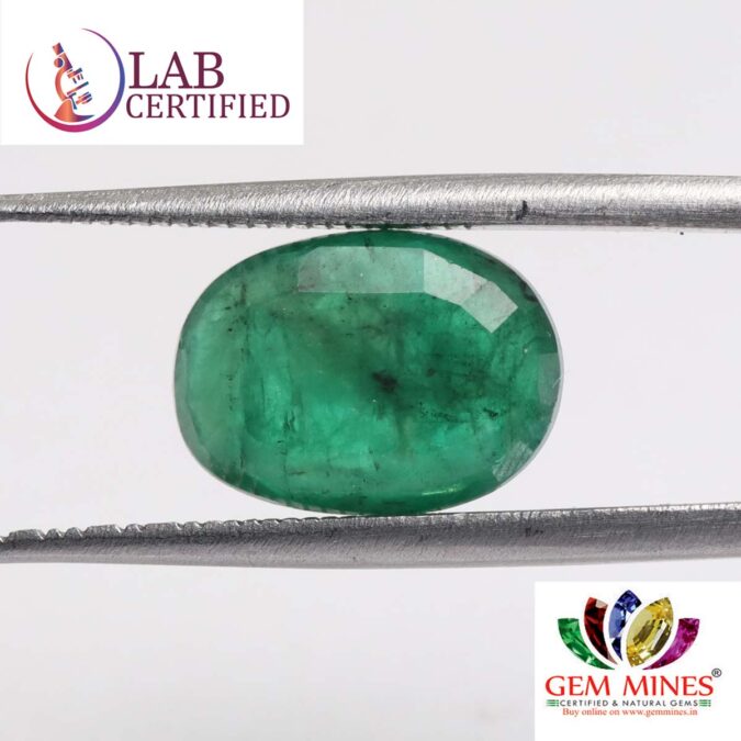 Beautiful 3.35 Ct. Emerald (Emerald Mines) Sava 3 Ratti Panna. Free Horoscope & Free Pundit Ji Advise / Consultation. Original Natural Lab certified gems by IGI GTL / Birth stones / Large Gem Selection of shree shubh Rashi Ratan Vedic dhan at Gem Mines. May Bhagwan Brahma, Vishnu, Shiv & Universe bless you.