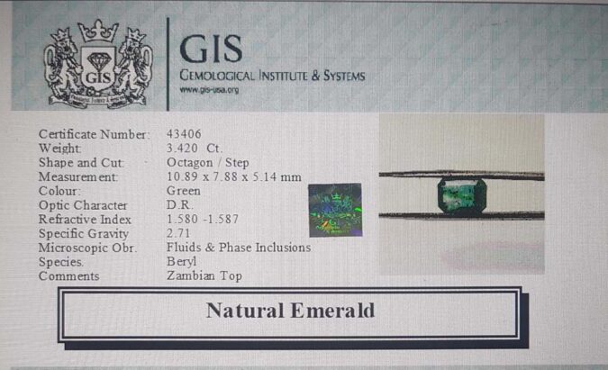 Beautiful 3.42 Ct. Emerald (Zambian Mines) Sava 3 Ratti Panna. Free Horoscope & Free Pundit Ji Advise / Consultation. Original Natural Lab certified gems by IGI GTL / Birth stones / Large Gem Selection of shree shubh Rashi Ratan Vedic dhan at Gem Mines. May Bhagwan Brahma, Vishnu, Shiv & Universe bless you.