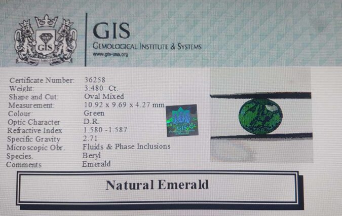 Beautiful 3.48 Ct. Emerald (Emerald Mines) Sava 3 Ratti Panna. Free Horoscope & Free Pundit Ji Advise / Consultation. Original Natural Lab certified gems by IGI GTL / Birth stones / Large Gem Selection of shree shubh Rashi Ratan Vedic dhan at Gem Mines. May Bhagwan Brahma, Vishnu, Shiv & Universe bless you.