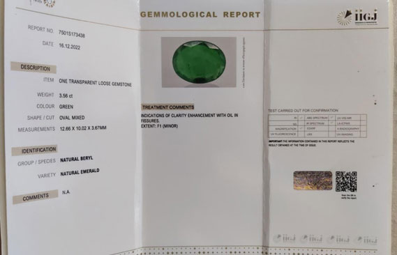 Beautiful 3.56 Ct. Natural Emerald (Top+-Mines) sva 3+ Ratti Panna. Free Horoscope & Free Pundit Ji Astrological Advise / Consultation. Original Natural Lab certified gems by IGI GTL / Birth stones / Large Gem Selection of shree shubh Rashi Ratan Vedic dhan at Gem Mines. May Bhagwan Brahma, Vishnu, Shiv & Universe bless you.