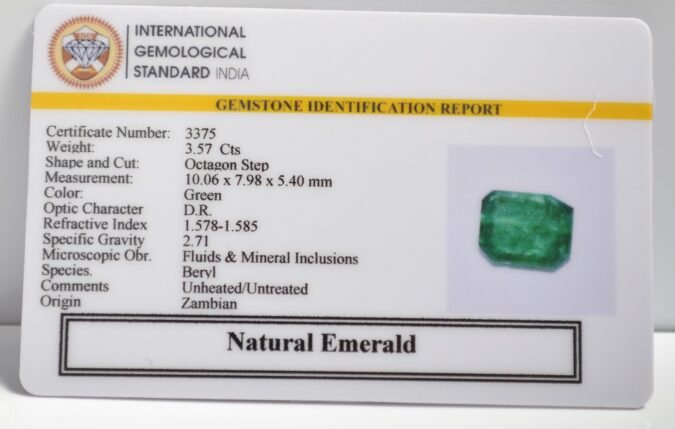 Certified Natural Emerald 3.57 Ct.(3+ Ratti) in Octagon Step shape