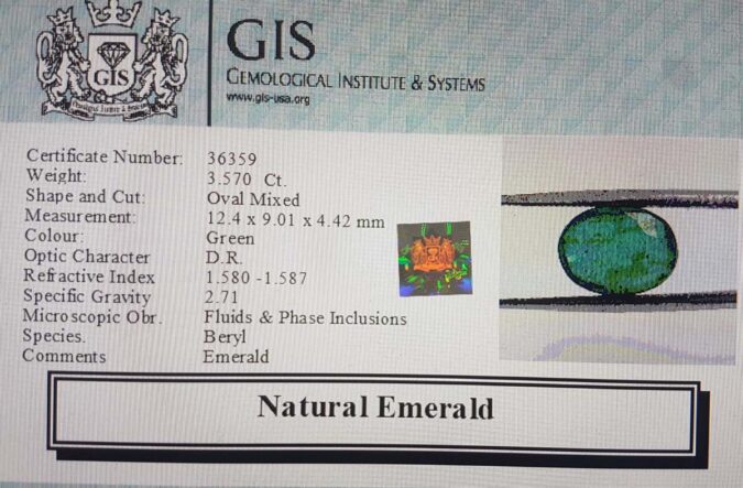 Beautiful 3.57 Ct. Emerald (Emerald Mines) Sava 3 Ratti Panna. Free Horoscope & Free Pundit Ji Advise / Consultation. Original Natural Lab certified gems by IGI GTL / Birth stones / Large Gem Selection of shree shubh Rashi Ratan Vedic dhan at Gem Mines. May Bhagwan Brahma, Vishnu, Shiv & Universe bless you.