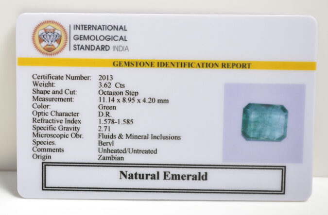 Beautiful 3.62 Cts Natural Emerald (AAA+-Mines) sva 4+ Ratti EMERALD. Free Horoscope & Free Pundit Ji Astrological Advise / Consultation. Original Natural Lab certified gems by IGI GTL / Birth stones / Large Gem Selection of shree shubh Rashi Ratan Vedic dhan at Gem Mines. May Bhagwan Brahma, Vishnu, Shiv & Universe bless you.
