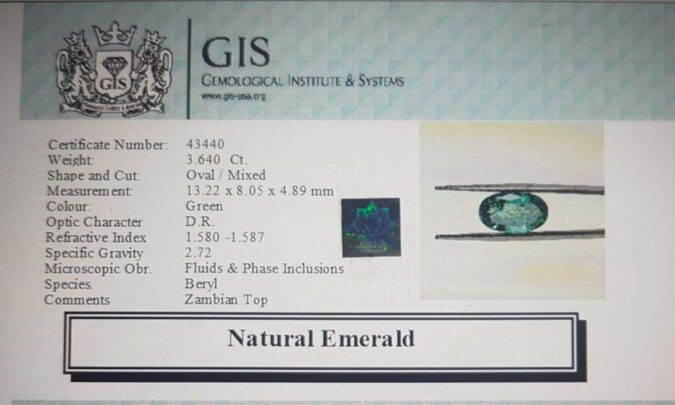 Beautiful 3.64 Ct. Emerald (Zambian Mines) Sava 4 Ratti Panna. Free Horoscope & Free Pundit Ji Advise / Consultation. Original Natural Lab certified gems by IGI GTL / Birth stones / Large Gem Selection of shree shubh Rashi Ratan Vedic dhan at Gem Mines. May Bhagwan Brahma, Vishnu, Shiv & Universe bless you.