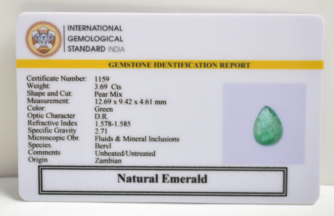 Beautiful 3.69 Cts Natural Emerald (AAA+Mines) sva 4 Ratti EMERALD. Free Horoscope & Free Pundit Ji Astrological Advise / Consultation. Original Natural Lab certified gems by IGI GTL / Birth stones / Large Gem Selection of shree shubh Rashi Ratan Vedic dhan at Gem Mines. May Bhagwan Brahma, Vishnu, Shiv & Universe bless you.