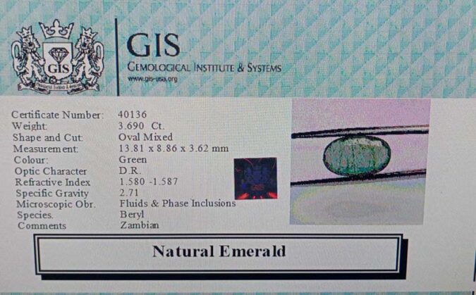 Beautiful 3.69 Ct. Emerald (Zambian Mines) Sava 4 Ratti Panna. Free Horoscope & Free Pundit Ji Advise / Consultation. Original Natural Lab certified gems by IGI GTL / Birth stones / Large Gem Selection of shree shubh Rashi Ratan Vedic dhan at Gem Mines. May Bhagwan Brahma, Vishnu, Shiv & Universe bless you.