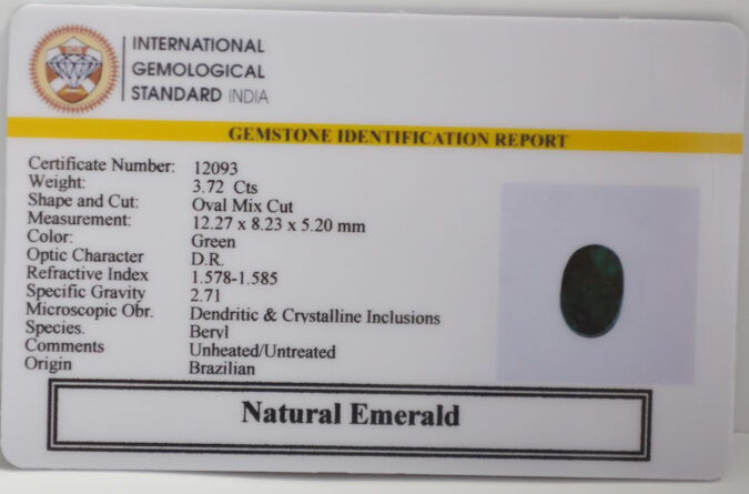 Beautiful 3.72 Cts Natural Emerald (Very Good-Mines) sva 4+ Ratti EMERALD. Free Horoscope & Free Pundit Ji Astrological Advise / Consultation. Original Natural Lab certified gems by IGI GTL / Birth stones / Large Gem Selection of shree shubh Rashi Ratan Vedic dhan at Gem Mines. May Bhagwan Brahma, Vishnu, Shiv & Universe bless you.