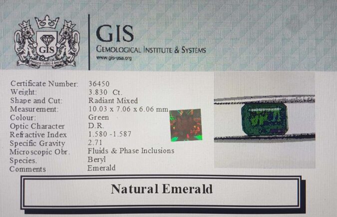 Beautiful 3.83 Ct. Emerald (Emerald Mines) Sava 4 Ratti Panna. Free Horoscope & Free Pundit Ji Advise / Consultation. Original Natural Lab certified gems by IGI GTL / Birth stones / Large Gem Selection of shree shubh Rashi Ratan Vedic dhan at Gem Mines. May Bhagwan Brahma, Vishnu, Shiv & Universe bless you.