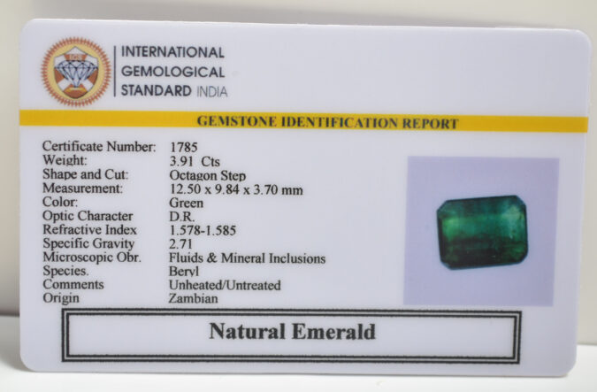 Beautiful 3.91 Cts Natural Emerald (Top-Mines) sva 4+ Ratti EMERALD. Free Horoscope & Free Pundit Ji Astrological Advise / Consultation. Original Natural Lab certified gems by IGI GTL / Birth stones / Large Gem Selection of shree shubh Rashi Ratan Vedic dhan at Gem Mines. May Bhagwan Brahma, Vishnu, Shiv & Universe bless you.