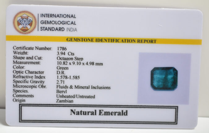 Beautiful 3.94 Cts Natural Emerald (AAA+-Mines) sva 4+ Ratti EMERALD. Free Horoscope & Free Pundit Ji Astrological Advise / Consultation. Original Natural Lab certified gems by IGI GTL / Birth stones / Large Gem Selection of shree shubh Rashi Ratan Vedic dhan at Gem Mines. May Bhagwan Brahma, Vishnu, Shiv & Universe bless you.