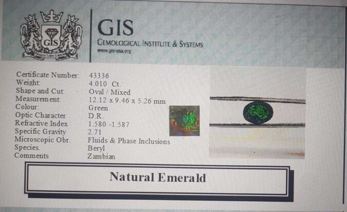Beautiful 4.01 Ct. Emerald (Zambian Mines) Sava 4 Ratti Panna. Free Horoscope & Free Pundit Ji Advise / Consultation. Original Natural Lab certified gems by IGI GTL / Birth stones / Large Gem Selection of shree shubh Rashi Ratan Vedic dhan at Gem Mines. May Bhagwan Brahma, Vishnu, Shiv & Universe bless you.