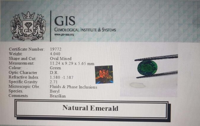 Beautiful 4.04 Ct. Emerald (Brazilian Mines) Sava 4 Ratti Panna. Free Horoscope & Free Pundit Ji Advise / Consultation. Original Natural Lab certified gems by IGI GTL / Birth stones / Large Gem Selection of shree shubh Rashi Ratan Vedic dhan at Gem Mines. May Bhagwan Brahma, Vishnu, Shiv & Universe bless you.