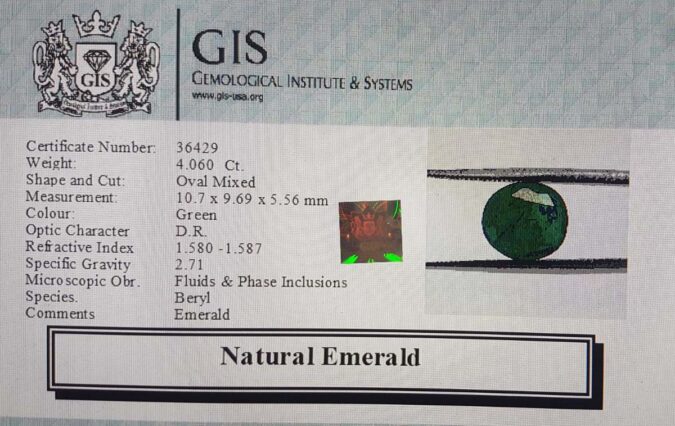 Beautiful 4.06 Ct. Emerald (Emerald Mines) Sava 4 Ratti Panna. Free Horoscope & Free Pundit Ji Advise / Consultation. Original Natural Lab certified gems by IGI GTL / Birth stones / Large Gem Selection of shree shubh Rashi Ratan Vedic dhan at Gem Mines. May Bhagwan Brahma, Vishnu, Shiv & Universe bless you.