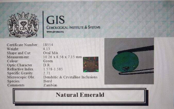 Beautiful 4.13 Ct. Emerald (Zambian Mines) Sava 4 Ratti Panna. Free Horoscope & Free Pundit Ji Advise / Consultation. Original Natural Lab certified gems by IGI GTL / Birth stones / Large Gem Selection of shree shubh Rashi Ratan Vedic dhan at Gem Mines. May Bhagwan Brahma, Vishnu, Shiv & Universe bless you.