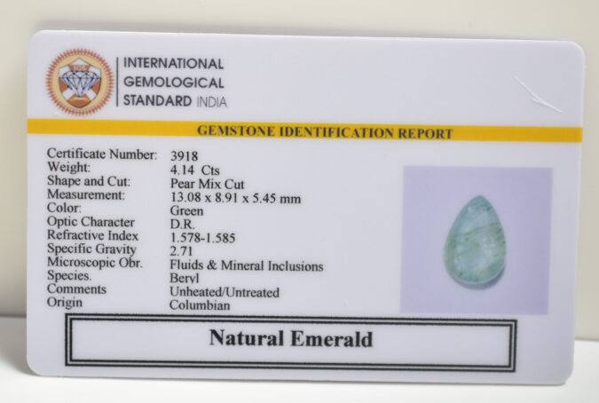 Beautiful 4.14 Cts Natural Emerald (AAA-Mines) sva 4+ Ratti EMERALD. Free Horoscope & Free Pundit Ji Astrological Advise / Consultation. Original Natural Lab certified gems by IGI GTL / Birth stones / Large Gem Selection of shree shubh Rashi Ratan Vedic dhan at Gem Mines. May Bhagwan Brahma, Vishnu, Shiv & Universe bless you.