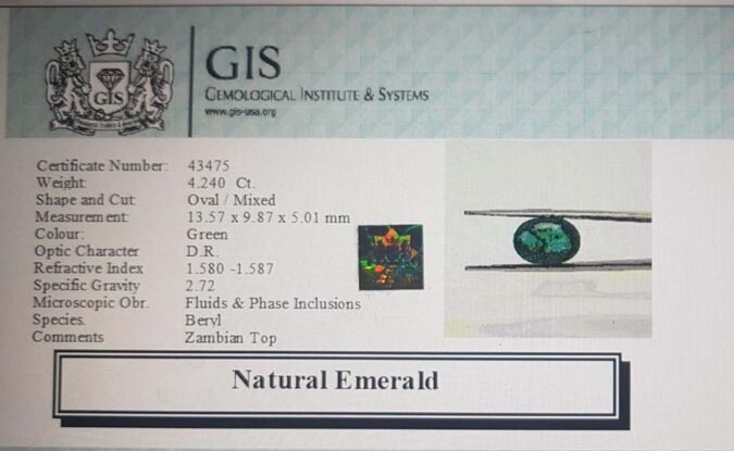 Beautiful 4.24 Ct. Emerald (Zambian Mines) Sava 4 Ratti Panna. Free Horoscope & Free Pundit Ji Advise / Consultation. Original Natural Lab certified gems by IGI GTL / Birth stones / Large Gem Selection of shree shubh Rashi Ratan Vedic dhan at Gem Mines. May Bhagwan Brahma, Vishnu, Shiv & Universe bless you.